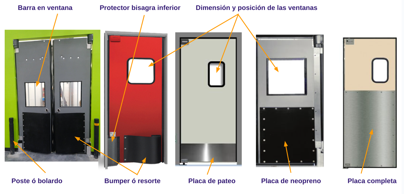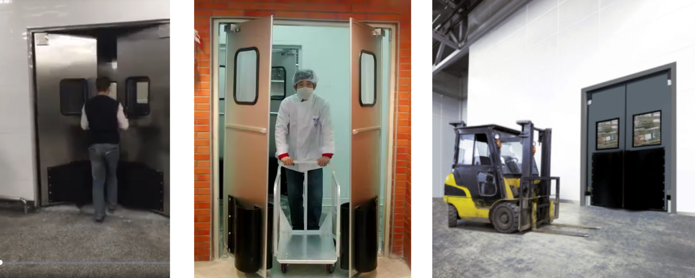 Una puerta de impacto es una puerta de doble acción diseñada para abrirse en ambos sentidos con facilidad, permitiendo el paso frecuente de personas, montacargas o carritos sin necesidad de usar las manos.
